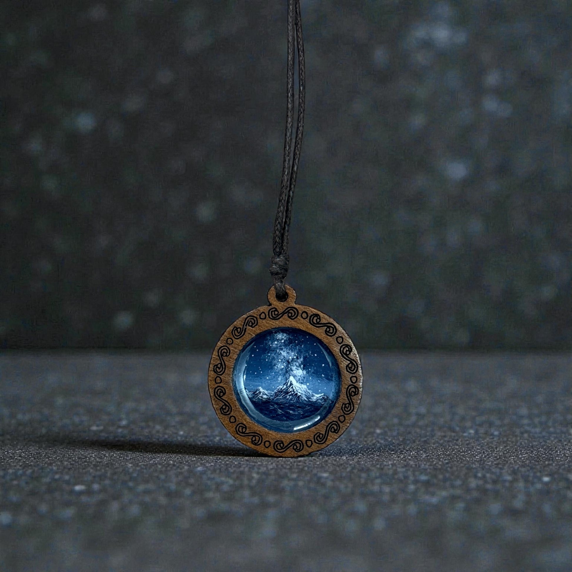 Hand-Painted Wooden Pendant Sealed with Epoxy Resin