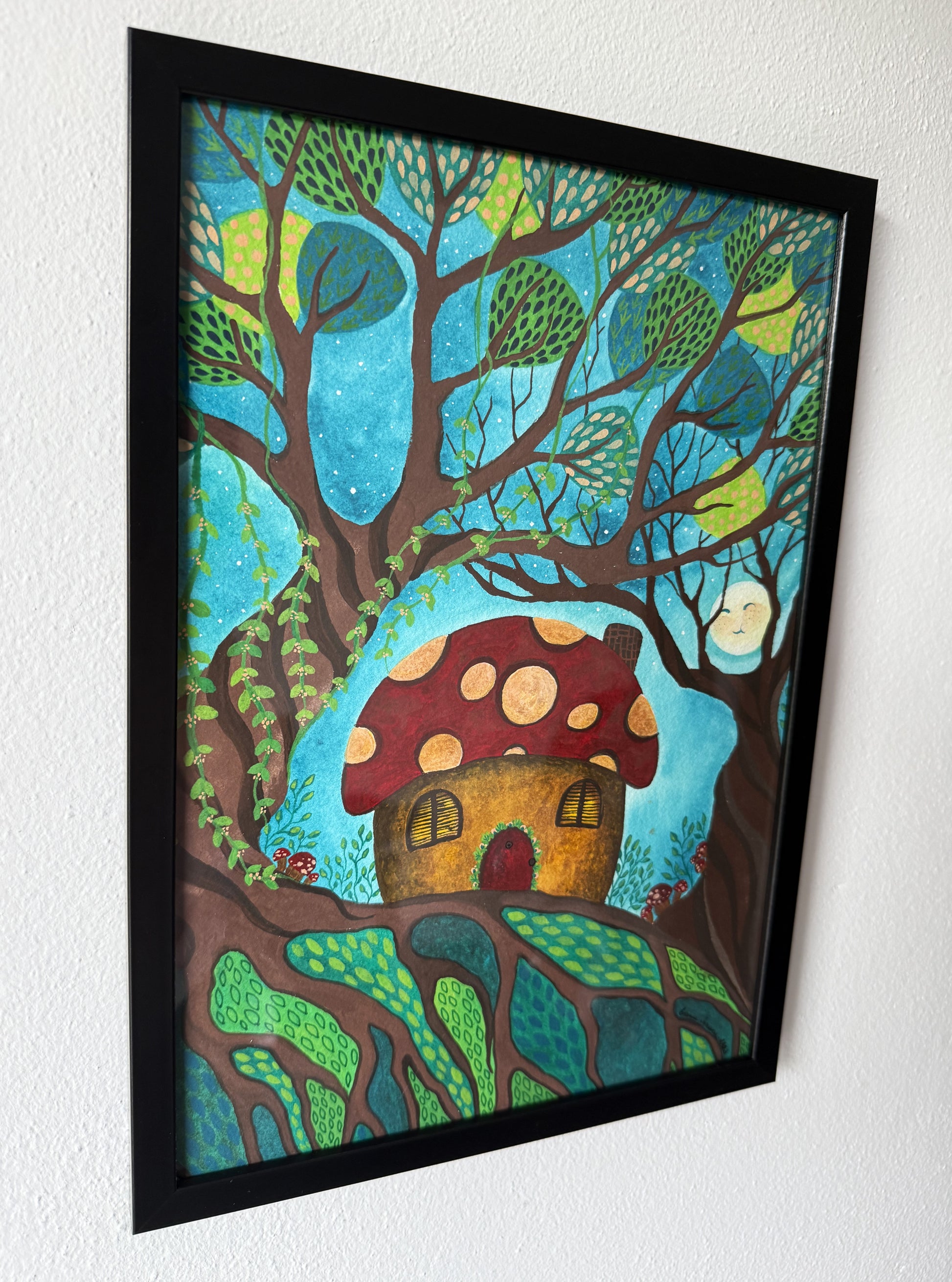 A moonlit forest alive with whispers of magic, where dreams and nature merge in silence... Original gouache artwork painted on 300gsm watercolor paper.