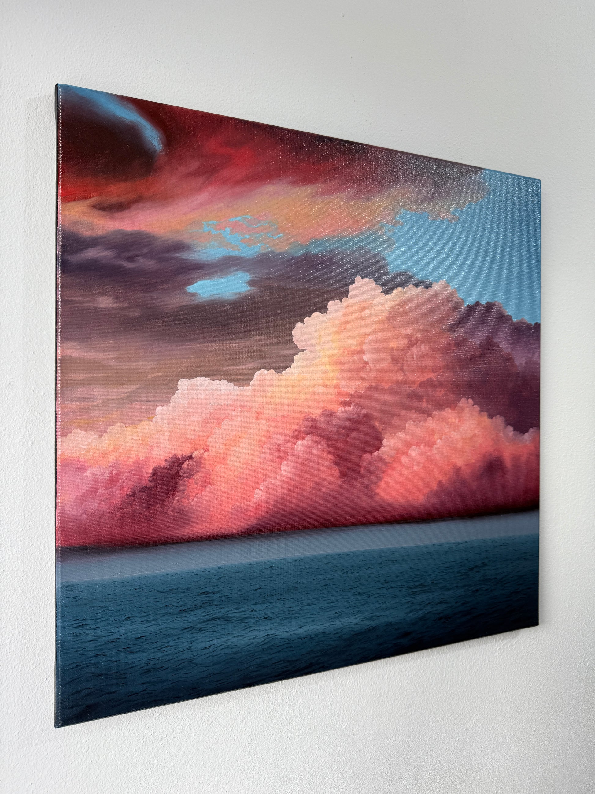 Aceasta este o pictură despre frumusețea tăcută din mijlocul unei furtuni... Am vrut să surprind culorile și emoțiile de dinainte sau de după ploaie, când cerul pare să strălucească. Este vorba despre observarea micilor momente de liniște și lumină, chiar și în ceva sălbatic.